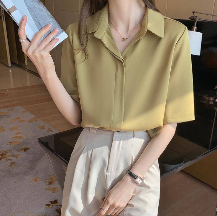 Silk shirt women's 2022 spring and autumn white collar OL style crepe de chine top small pointed collar straight long sleeve mulberry silk shirt